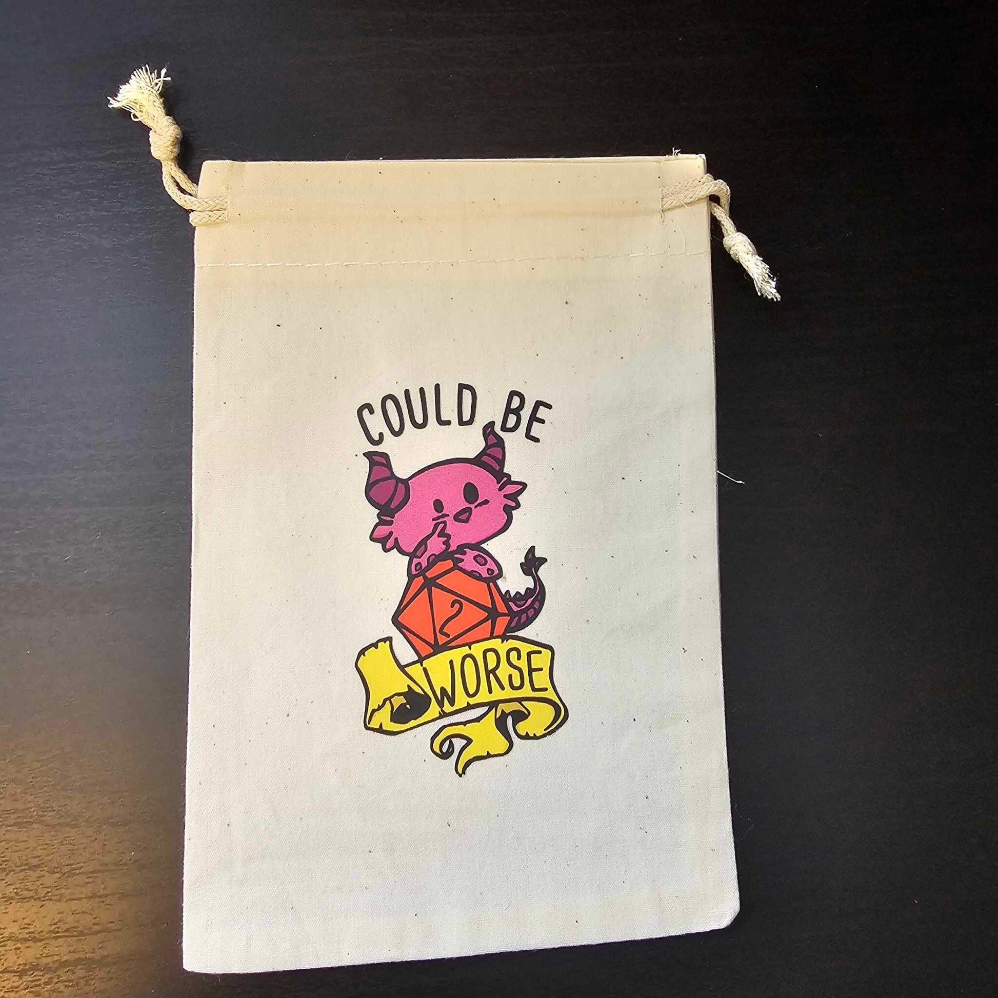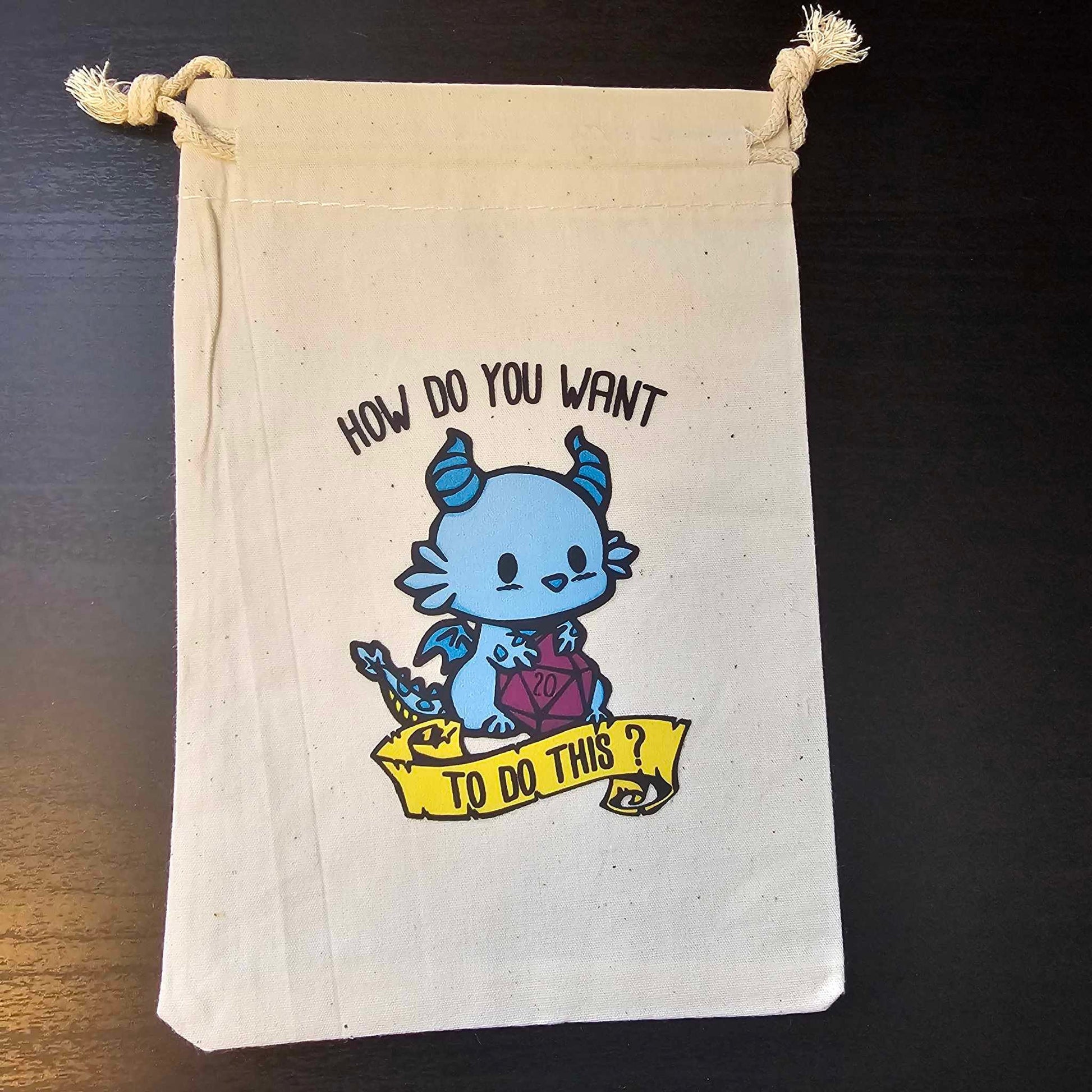 Introducing our adorable Canvas dice bag for role playing games, featuring charming dragon art! This sturdy and stylish bag is perfect for storing your favorite dice sets and gaming accessories. The cute dragon design adds a touch of whimsy to your tabletop adventures, making it a must-have for any fantasy enthusiast.